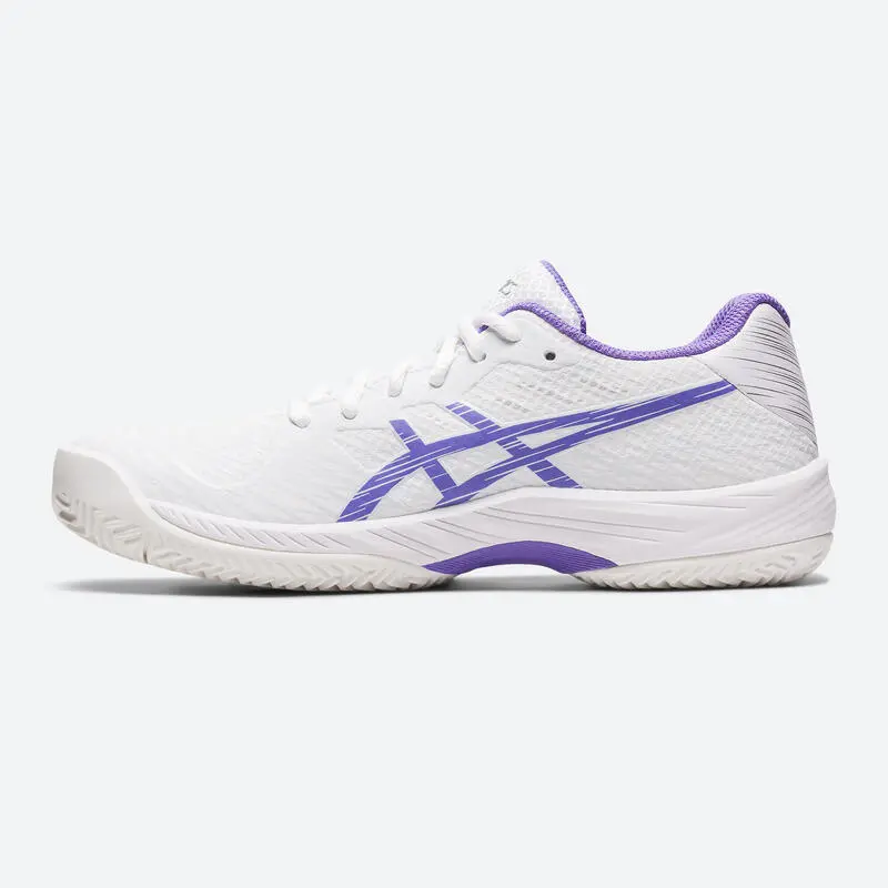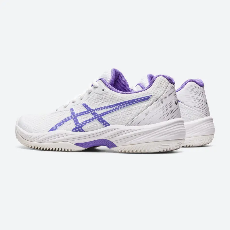 Compra en Decathlon Zapatillas de tenis Mujer tierra batida – Gel Game 9 blanco parma Zapatillas de tenis concebidas para jugadoras de nivel avanzado a experto que practican en tierra batida, con desplazamientos de gran intensidad.