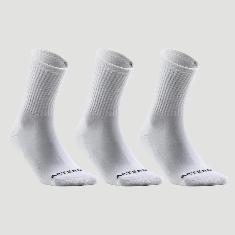 Compra en Decathlon Calcetines altos de tenis Pack de 3 Artengo RS 100 Calcetines con refuerzos en talón y puntera concebidos para iniciarte en la prática del tenis.