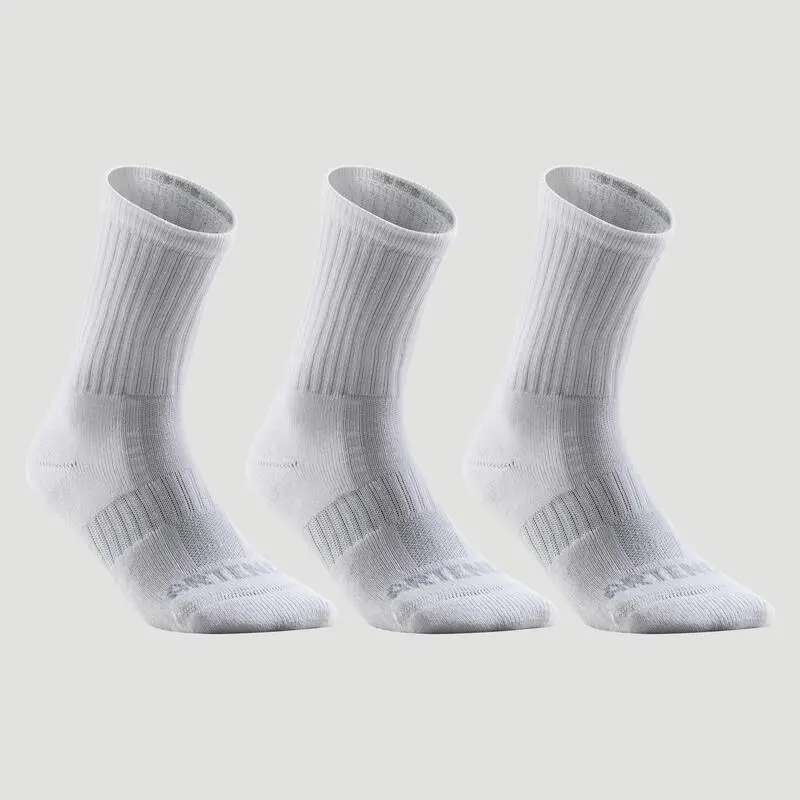 Compra en Decathlon Calcetines altos de tenis Pack de 3 Artengo RS 500 Concebidos para jugar al tenis con regularidad gracias a sus refuerzos en puntera, talón y planta, que aumentan su resistencia y confort.