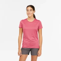 Compra en Decathlon Camiseta de montaña y trekking manga corta Mujer Quechua MH100 A los pies del Mont Blanc, nuestro equipo de apasionadas ha ecodiseñado esta camiseta que evacua el sudor para mujeres senderistas que se inician.