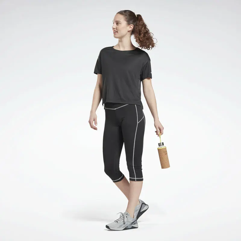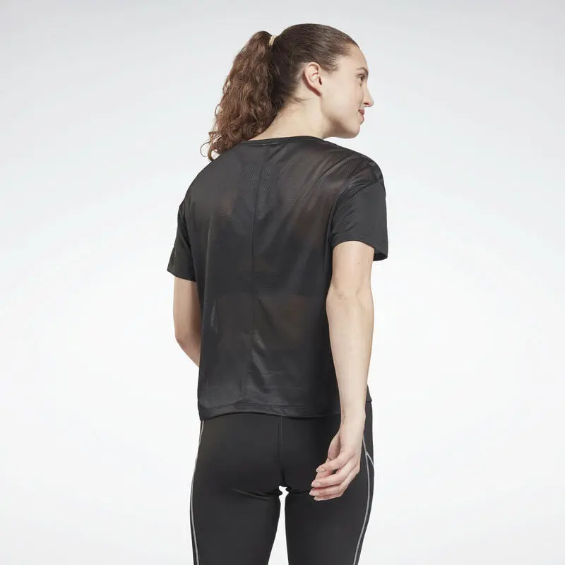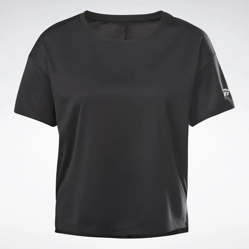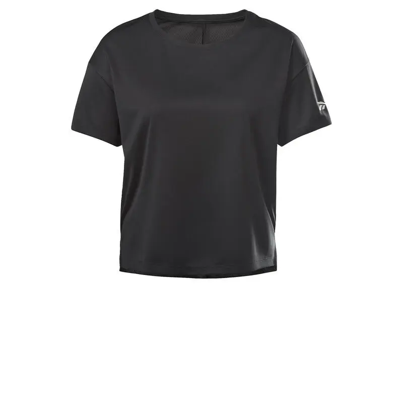 Compra en Decathlon Camiseta Manga Corta Mujer Reebok Logo Negro Esta camiseta para mujer está hecha de tejido que dispersa la humedad, manteniéndote fresca en los entrenamientos de alta intensidad. El panel de malla en la espalda proporciona ventilación adicional.