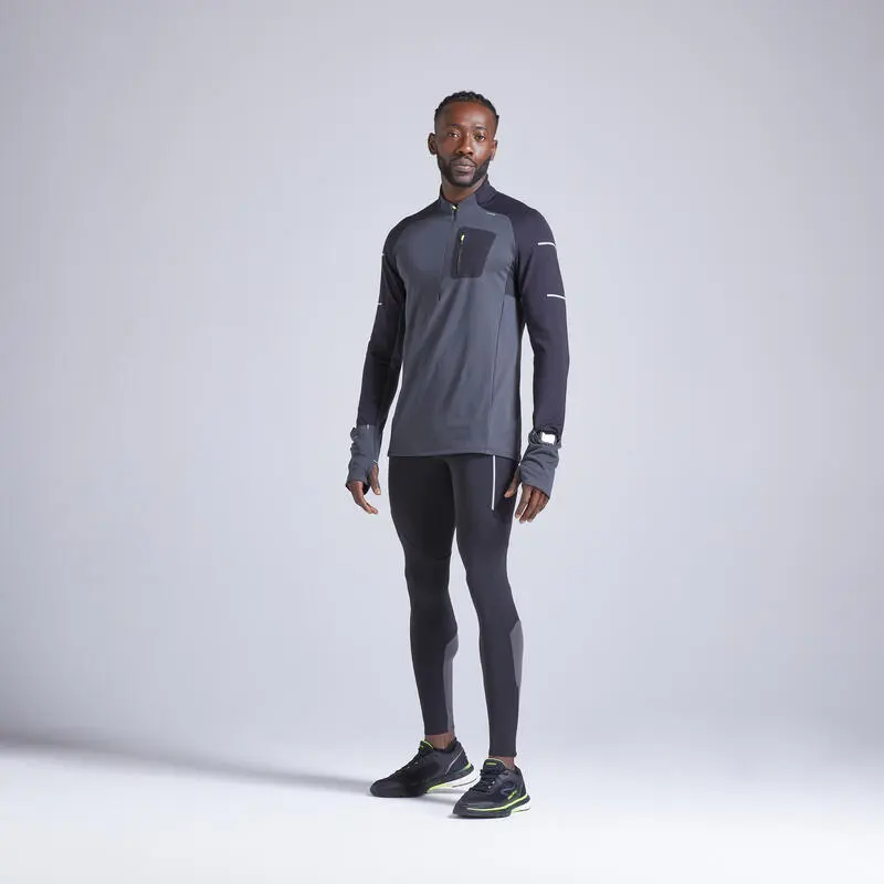 Compra en Decathlon Camiseta running manga larga Hombre Kiprun Warm Camiseta de manga larga de running para hombre, cálida y transpirable, para correr con tiempo frío. Bolsillo con cremallera en el pecho.