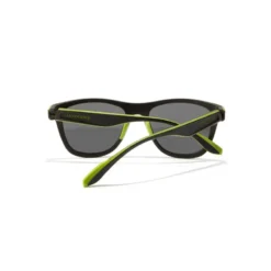 Compra en Decathlon Gafas de sol para Hombres y Mujeres ONE SPORT Dark Montura negra en acabado engomado con ribete verde y lentes oscuras.