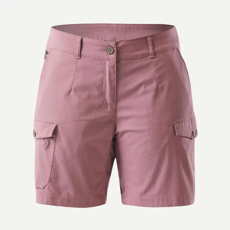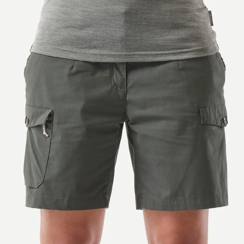 Compra en Decathlon Pantalón corto de montaña y trekking algodón Mujer Forclaz Travel 100 Nuestros ingenieros, viajeros mochileros, han desarrollado este pantalón corto para asegurarte total comodidad durante tus viajes.