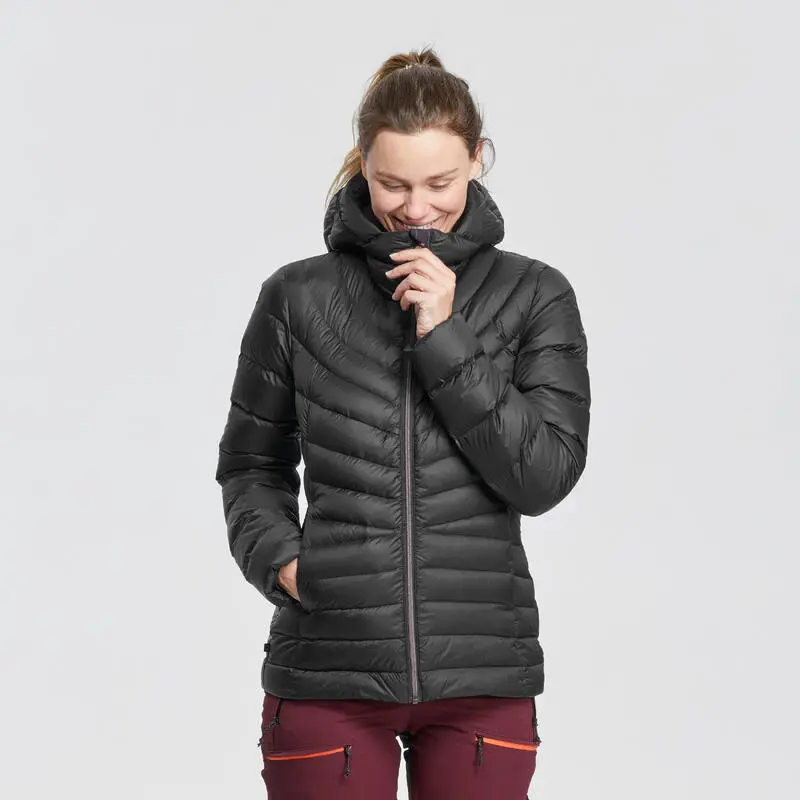 Compra en Decathlon Plumífero de montaña y trekking con capucha Mujer Forclaz MT500 Esta chaqueta acolchada de plumón con certificado RDS y con capucha ha sido diseñada para tus rutas de montaña con tiempo frío hasta -10 °C.