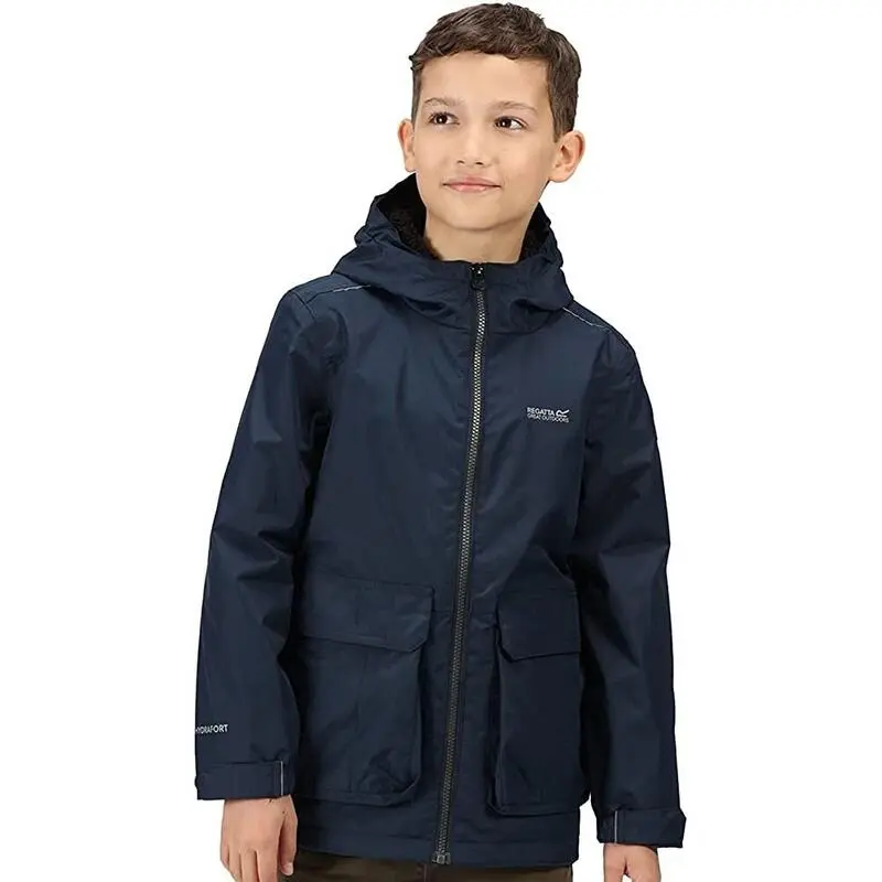 Compra en Decathlon Chaqueta Impermeable Salman para Niños/Niñas Marino Alta calidad Unisex-niños Senderismo de la naturaleza producto, Poliéster material, Marca: Regatta.